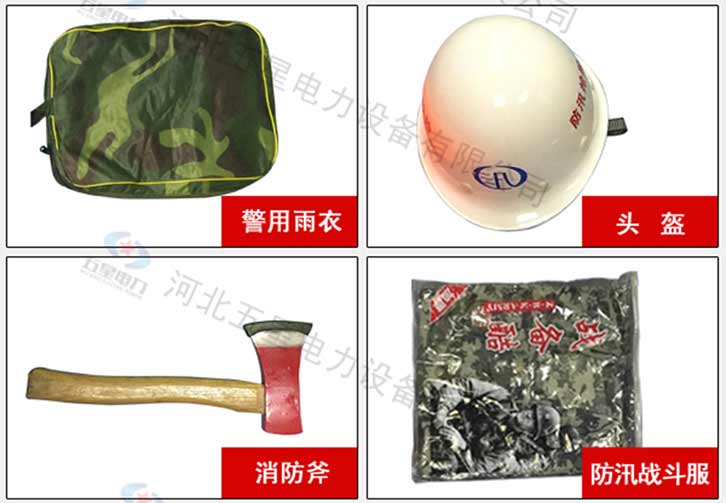 防汛組合工具包19件套:鎬、鈀、鋤頭、十磅錘、砍刀、方鏟、電筒、水鞋、防汛戰斗服、防寒雨衣、救生繩、雙背帶、救生衣、毛巾、水壺、頭盔、消防斧頭、信號燈、工具包。該組合工具包輕便、工具配備齊全適用于救援隊員使用。